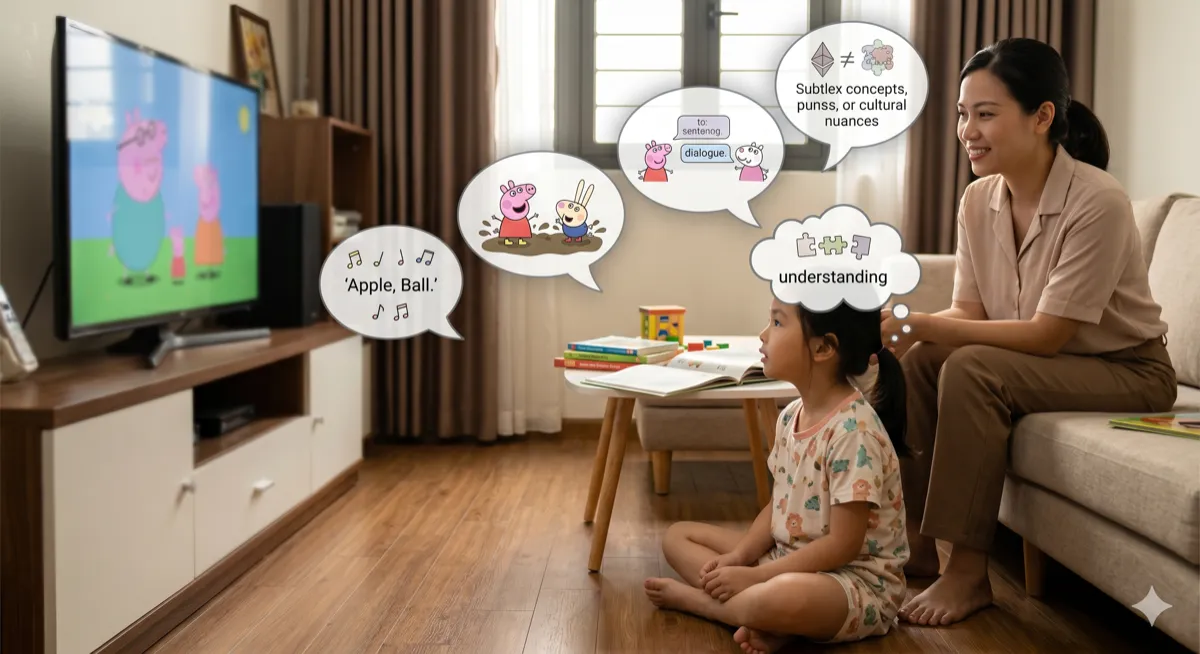 Khi thấy con chăm chú xem một bộ phim hoạt hình tiếng Anh, nhiều bậc cha mẹ thường tự hỏi: "Liệu con có thực sự hiểu họ đang nói gì không, hay chỉ là đang nhìn hình ảnh chuyển động?". Thực tế, khái niệm "hiểu" trong ngôn ngữ học không phải là một trạng thái "có hoặc không", mà nó là một hành trình phân cấp với nhiều tầng bậc khác nhau. Việc xác định con đang ở cấp độ nào sẽ giúp cha mẹ điều chỉnh nguồn tài liệu học tập phù hợp, tránh việc "quá tải" hoặc "quá dễ" gây nhàm chán cho trẻ.